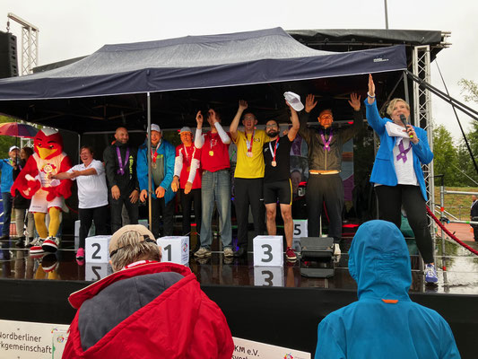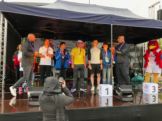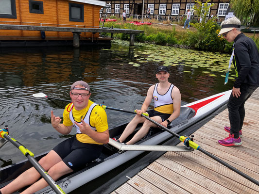 Kürzlich nahm der Bernkasteler RV mit 4 Sportlern an den Landesspielen von Special Olympics Berlin und Brandenburg in Potsdam teil – und das mit großem Erfolg und noch größerer Begeisterung. Die Landesspiele begannen mit einer großen Eröffnungsveranstaltung in Berlin, wo die teilnehmen Delegationen herzlich begrüßt und in einem Rahmenprogramm symbolisch die olympische Flamme entzündet wurde. Zahlreiche Politiker und Ehrengäste zeigten Präsenz und würdigten die hohe Motivation der vielen teilnehmenden Athletinnen und Athleten. Am Freitag starteten dann die Ruderwettbewerbe am Gelände der Potsdamer Rudergesellschaft in Nähe des Luftschiffhafengeländes. In den Vorläufen ruderten David Schmidt und Jonas Platter erstmals in einem sog. Albanosysstem, wo durchgehende Bojenketten die Bahnen der Ruderer abtrennen; ein ungewohntes Rudern mit Gewöhnungsbedarf. Samstags folgten die Finalrennen, die je nach Leistungsvermögen und erreichter Vorlauf-Platzierung gesetzt waren. Die Final-Ergebnisse: Jonas Platter: Sieg im Einer im C-Finale; Sieg und Goldmedaille im Unified-Doppelzweier im B-Finale mit Unified-Partner Jan-Vincent Ruf. David Schmidt: Silbermedaille im B-Finale im Einer und sehr starke Leistung mit Bronze-Medaille im Unified-Doppelzweier mit Unified-Partner Raphael Ruf im A-Finale der besten Mannschaften. Besonders das letzte Rennen zeigte alle 3 Finalboote der höchsten Leistungsklasse bis kurz vor dem Ziel auf gleicher Höhe. Ein spannendes und bis ins Ziel forderndes Rennen mit toller Leistung aller Athleten und der Unified-Partner. Überreicht wurden die Medaillen übrigens von Kevin Kuske, 4-facher Olympiasieger als Anschieber im Bob.